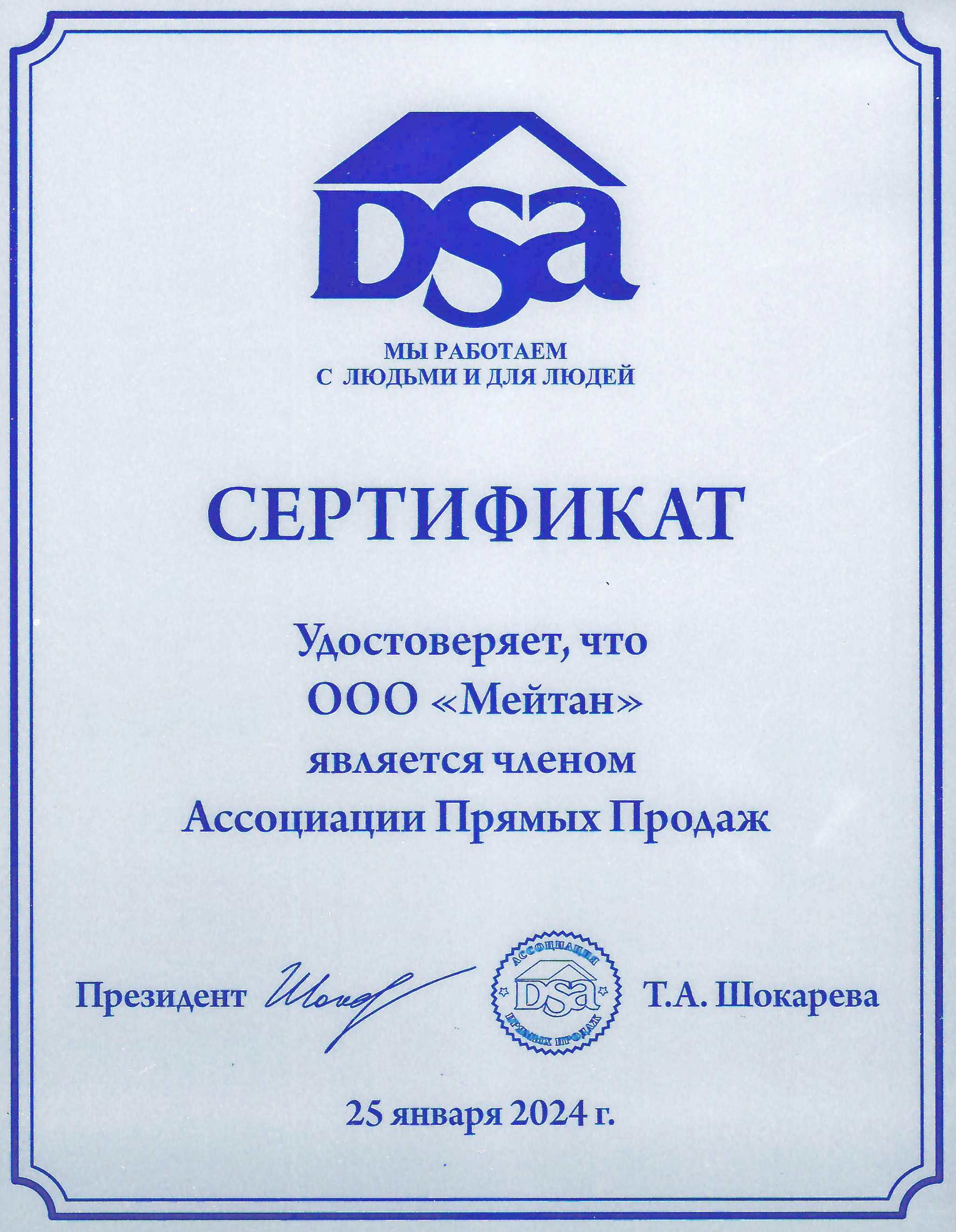 С января 2024 МейТан является членом Российской ассоциации прямых продаж. Быть членом АПП для нашей Компании, значит, иметь возможность: